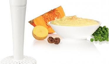 Погружной блендер MSM 64035 в белом исполнении с красными элементами — это эстетика, стиль и функциональность. Небольшой размер позволяет комфортно работать с прибором. Эргономичный корпус и антискользящее покрытие обеспечивают надежный хват. Насадка для приготовления картофельного пюре расширяет возможности модели.