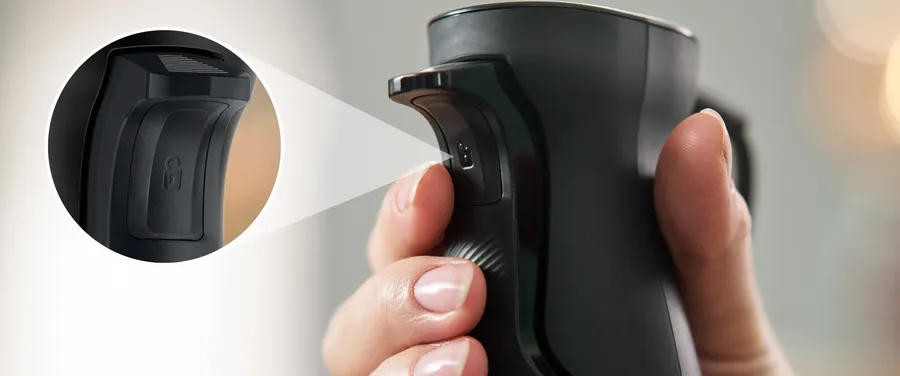 Эргономичная ручка с мягким покрытием Soft-touch обеспечивает комфортное и безопасное использование блендера. Бесступенчатая регулировка скорости и наличие импульсного/турбо режима позволяют настроить работу прибора под конкретные задачи и продукты. Комплектация блендера включает мерный стакан, что делает его использование еще более удобным. Есть также универсальная чаша с ножом для измельчения твердых продуктов, что делает блендер еще более функциональным.