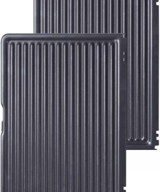 Гриль Bosch TFB3302V — компактная модель мощностью 1800 Вт. Съемные алюминиевые пластины быстро нагреваются, они оснащены стоком для жира. Подвижная верхняя панель позволяет поджаривать толстые куски с двух сторон. Можно также размораживать и подогревать.