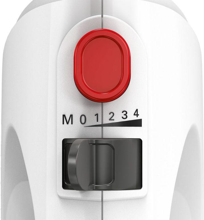 Миксер Bosch MFQ2600W оснащен чашей на подставке, которая вращается во время замешивания помимо самих насадок. Турбо-режим для твердых ингредиентов и 4 скорости вращения позволят выбрать наиболее подходящую для разных типов продуктов. Прибор можно снять с подставки и использовать как ручной, небольшой вес устройства обесепечит длительное замешивание.