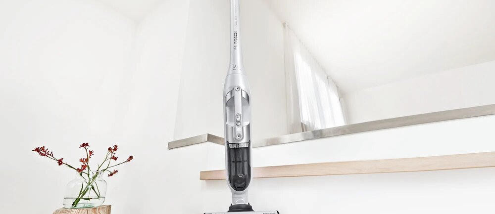 Пылесос Bosch BBH3ALL28 — это удобная модель в эксплуатации, выполненная в черно-серебристом цвете. Она не займет у вас много места в помещении, поскольку ее габариты небольшие: высота — 115 см, ширина — 26,5 см, глубина — 18 см. Это вертикальная техника, обладающая сухим типом уборки. Аккумулятор может работать от Li-ion или Ni-Mh элементов питания до 60 минут. За это время вы легко сможете сделать легкую и быструю, но при этом качественную уборку. Модель удобна лежит в руке, поэтому не стоит переживать о неудобстве. Время подзарядки — до 5 часов (100% заряда).