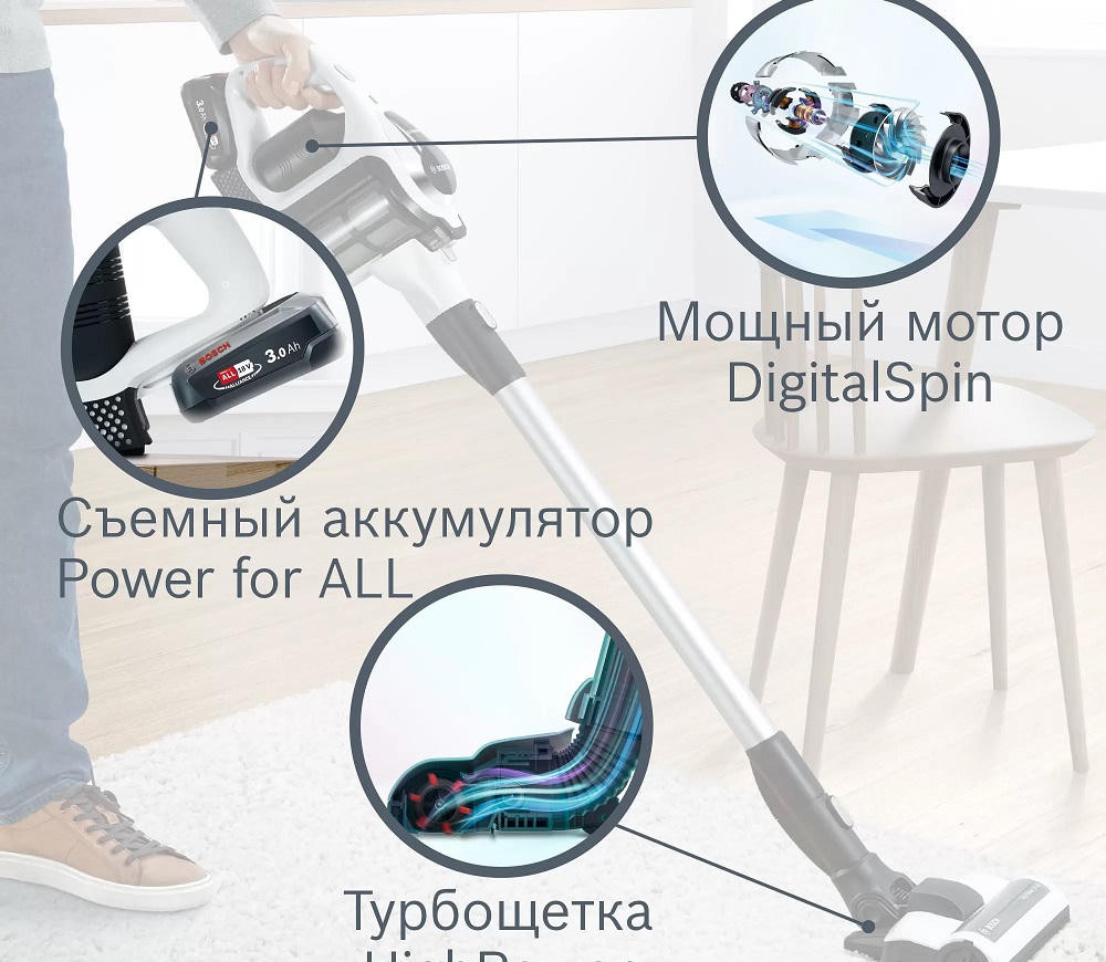 - Турбощетка HighPower для интенсивной очистки всех типов напольных покрытий от самых сильных загрязнений