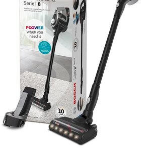 Пылесос Bosch BCS82G31 оснащен съемным универсальным аккумулятором Power for ALL 18 В, он подходит для разных приборов и держит время подзарядки до 45 минут. Имеется турбощетка HighPower с LED подсветкой, она отлично справляется с любыми напольными покрытиями. Также есть режим авто, он будет регулировать мощность работы в зависимости от напольного покрытия.