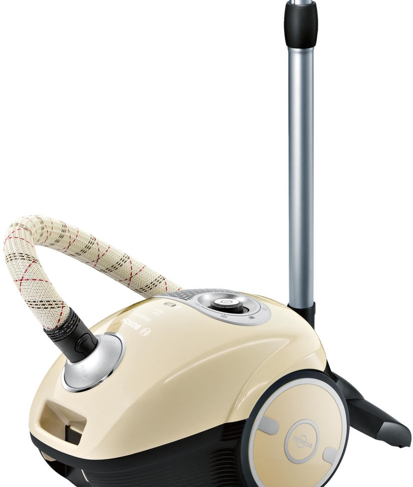 Текстильный шланг не перекручивается во время работы, что создает дополнительное удобство. Большие колеса оснащены мягкой поверхностью для защиты пола от повреждений. Вертикальная парковка экономит место при хранении прибора.