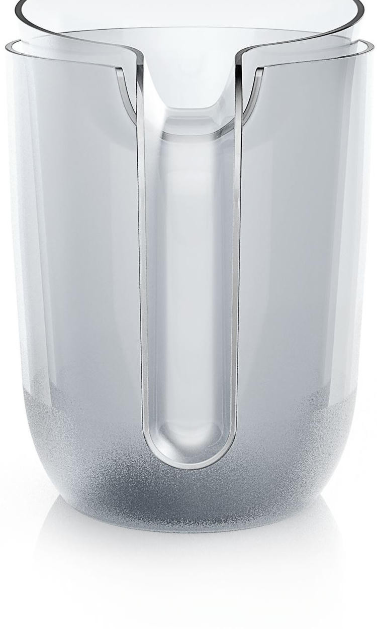 Прочный материал справляется даже с орехами и замороженными фруктами и овощами. При этом сохраняются питательные вещества и витамины. Силиконовые скребки на центрифуге перемешивают жидкость внутри чаши, что важно при измельчении разных ингредиентов. При помощи функции реверса можно извлечь застрявшие продукты и кожицу.