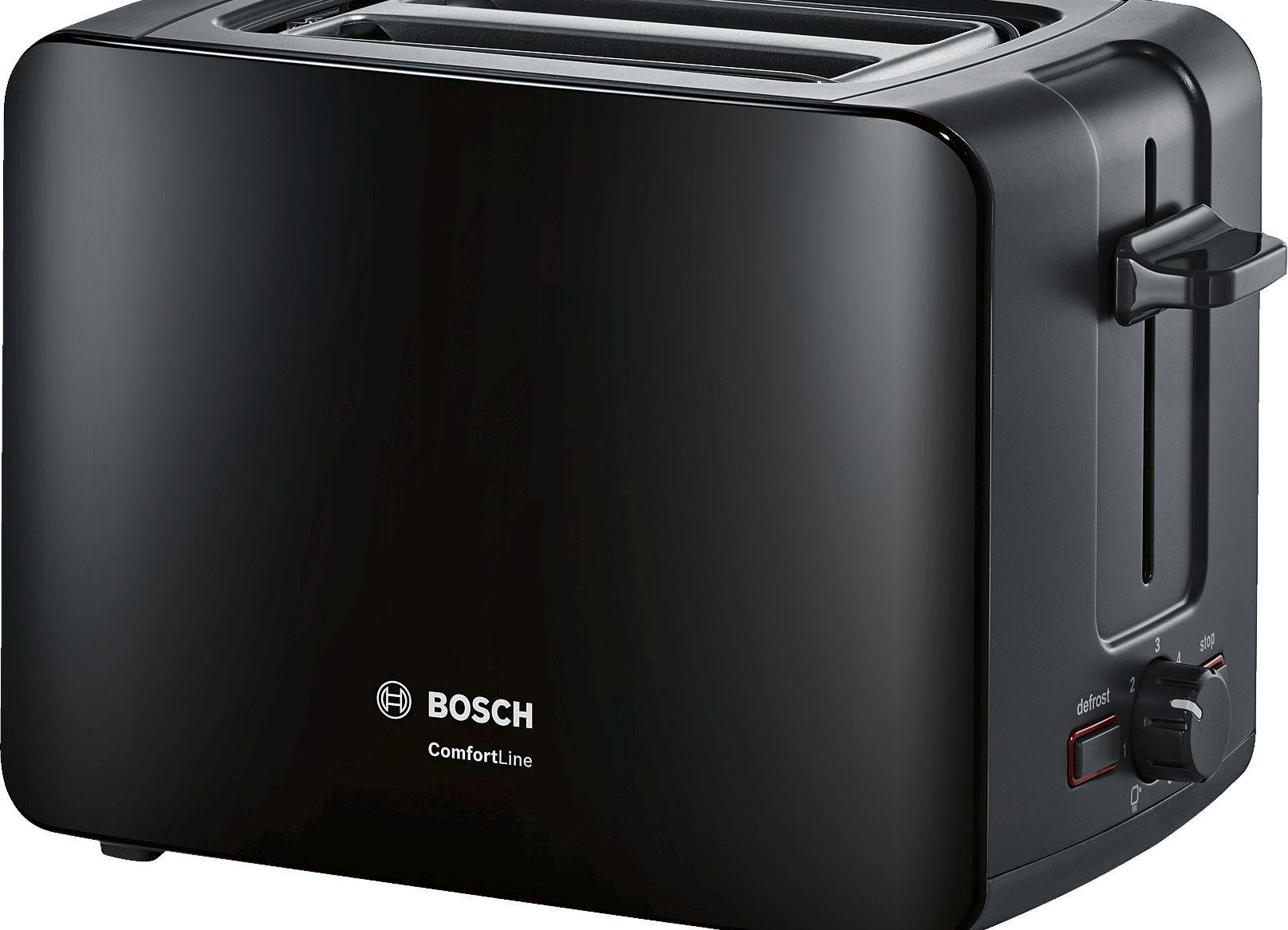 Компактный тостер Bosch TAT 6A113 для приготовления двух ломтиков хлеба. Бесступенчатый терморегулятор с интегрированной функцией подогрева позволяет выбрать нужную степень поджаривания хлеба, автоматическое центрирование обеспечивает равномерность прожарки. Для приготовления замороженных тостов нужно нажать на отдельную подсвеченную клавишу. Для извлечения небольших ломтиков хлеба предусмотрен высокий подъем решетки.