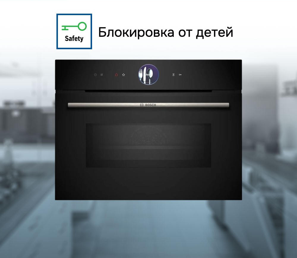 Духовой шкаф оснащен функцией Home Connect, которая позволяет управлять им с помощью смартфона или планшета. Всего в наличии 13 режимов нагрева, среди которых есть 4D-горячий воздух, верхний/нижний жар, большой и малый гриль, режим для пиццы, подогрев посуды, поддержание температуры, сушка и размораживание. В духовом шкафу также предусмотрена функция микроволн с пятью уровнями мощности, что позволяет значительно ускорить процесс приготовления пищи. Меню Assist поможет выбрать оптимальные настройки для каждого блюда, а автоматический быстрый разогрев сэкономит ваше время.