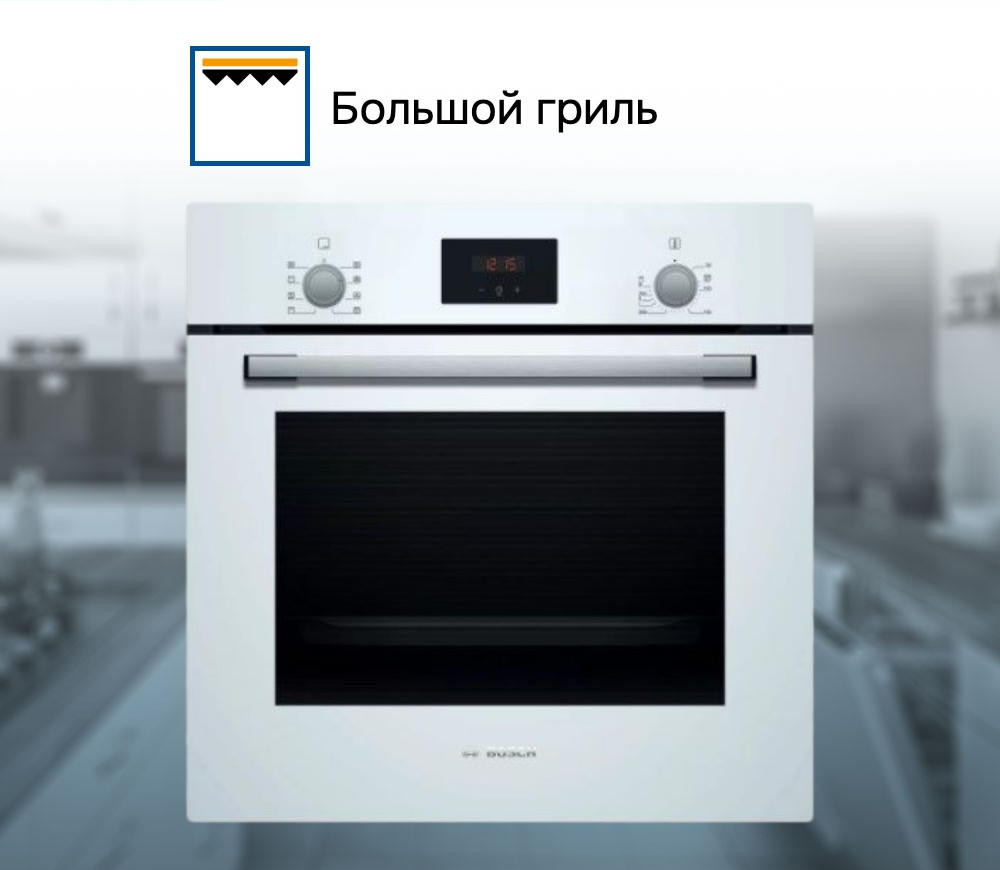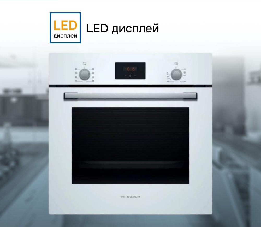 Духовой шкаф Bosch HBF512BV0R — это электрическая независимая модель из линейки Serie | 2. Ее внутренний объем составляет 66 литров, благодаря чему в ней можно запекать сразу несколько блюд, либо одно большое. Она выполнена в белом цветовом решении, благодаря чему хорошо вписывается в различные виды современного кухонного интерьера. Управление осуществляется с помощью сенсорных кнопок, а также утапливаемых и поворотных переключателей. LED-дисплей устойчив к высоким температурам, а также имеет качественное изображение под любым углом. Благодаря многофункциональным часам Easy Clock можно с легкостью отслеживать время до окончания работы одной из программ.