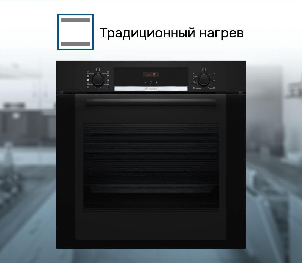 Духовой шкаф Bosch HRA334EB1 выполнен в черном классическом цвете с утапливаемыми поворотными переключателями. Благодаря режиму нагрева «горячий воздух + пар» блюдо будет хрустящим снаружи и сочным внутри. EcoClean поможет в уходе за прибором. А LCD-дисплей облегчит эксплуатацию устройством.