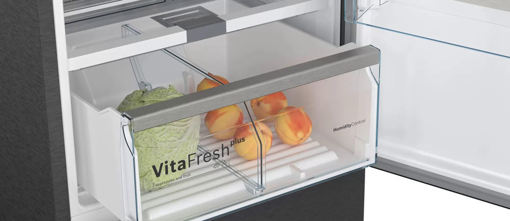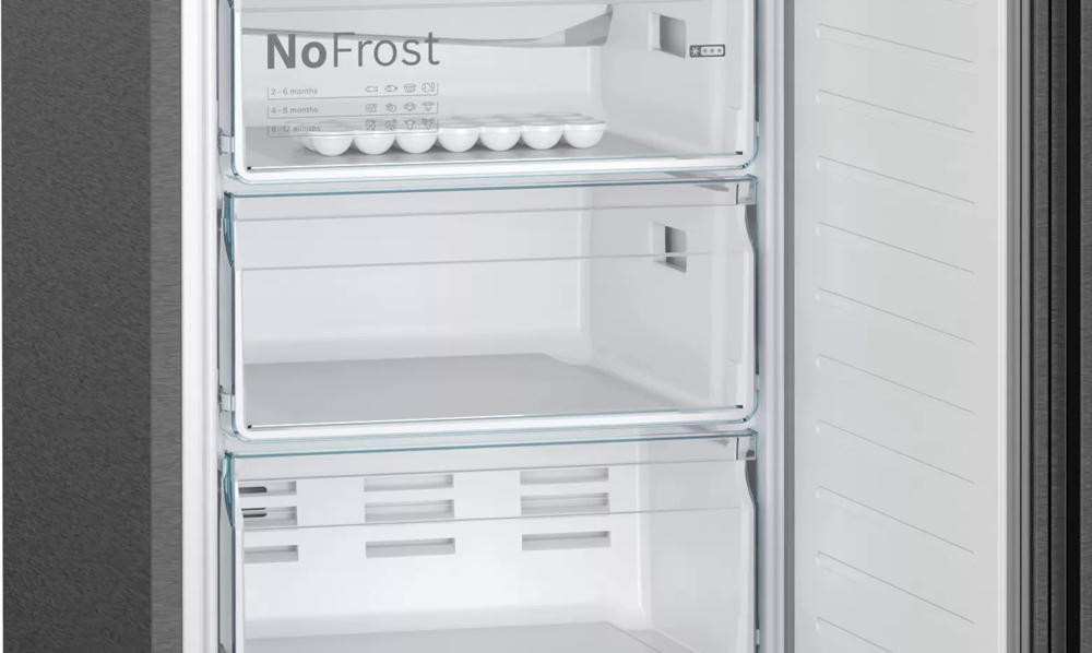 Двухкамерный холодильник Bosch KGN39AX32R выполнен в модном цвете "чёрная нержавеющая сталь" и имеет на стенках и дверце специальное покрытие от отпечатков пальцев. С помощью приложения Home Connect вы сможете задать необходимые настройки температуры и режима прямо со своего смартфона или планшета, а если дверца холодильника останется открытой, то вы немедленно получите уведомление на своё мобильное устройство.