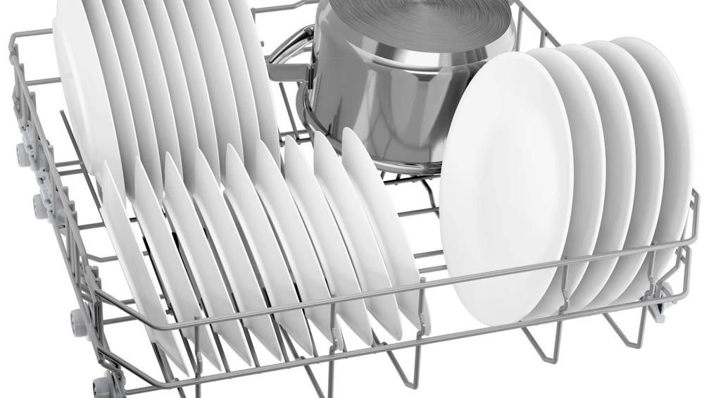 Устройство оснащено индикаторами наличия соли и ополаскивателя, то есть в случае отсутствия данных веществ вы увидите красный мигающий маячок на приборной панели. Четыре автоматических программы созданы для вашего удобства и экономии времени. Отдельное внимание заслуживают следующие режимы: HygienePlus и экстрасушка. Аппарат сам настраивает комфортную жесткость воды, что позволяет сократить ваши траты на дополнительные реагенты. Встроенный фильтр обладает функцией самоочистки. Блокировка от детей не даст ребенку внести свои изменения в настройки системы. За безопасную эксплуатацию отвечает опция AquaStop, которая при возникновении аварийной ситуации экстренно прекратит подачу воды в прибор.
