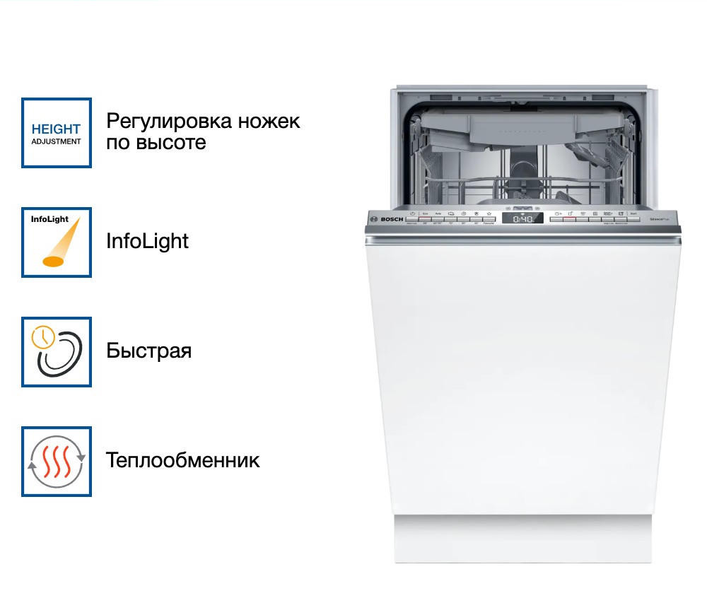 Встраиваемая посудомоечная машина Bosch SPV4HMX10E из серии Serie | 4 — это надежное и эффективное решение для современной кухни. Устройство выполнено в узком форм-факторе, что позволяет его установку даже в самых компактных пространствах.