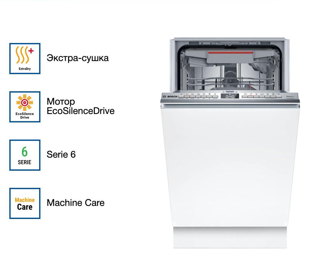 Встраиваемая посудомоечная машина Bosch SPV6EMX65Q - это уникальное сочетание элегантного дизайна и передовых технологий. Узкая модель с нержавеющей стальной панелью управления идеально впишется в любой интерьер, занимая минимум пространства.