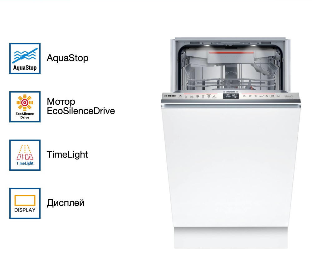Эта модель идеально подошла для нашей небольшой кухни — узкий формат экономит пространство, но при этом вмещает до 10 комплектов, чего более чем достаточно даже после званого ужина. Особенно радует луч TimeLight на полу: он показывает, сколько времени осталось до конца цикла, и мне больше не нужно открывать дверцу, чтобы проверить статус. В целом, Bosch SPV6EMX76Q — это сочетание немецкого качества, современных технологий и продуманного дизайна. Смело рекомендую всем, кто ценит чистоту, тишину и удобство управления.