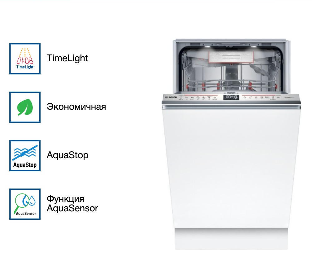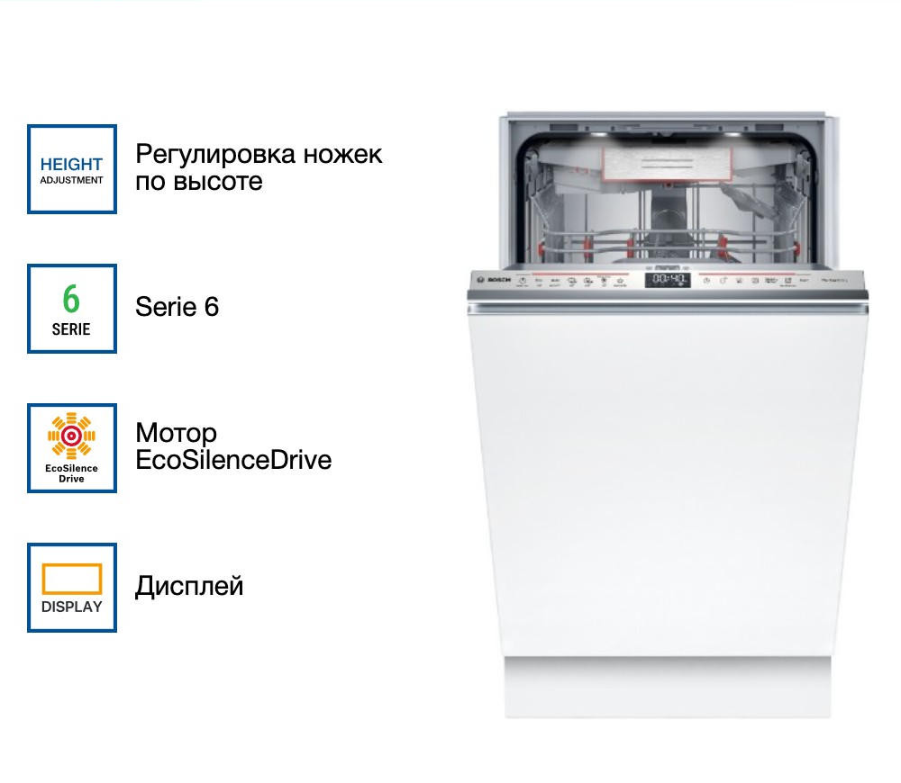Встраиваемая посудомоечная машина Bosch SPV6ZMX17E обладает элегантным дизайном и компактными размерами, что позволяет ей гармонично вписаться в любой интерьер кухни. Изготовленная из нержавеющей стали, она не только привлекательно выглядит, но и обеспечивает долгий срок службы. Модель оснащена инверторным двигателем EcoSilence Drive, который обеспечивает тихую и эффективную работу. С его помощью машина способна обслуживать до 10 комплектов посуды, что делает ее идеальным выбором для средних и больших семей.