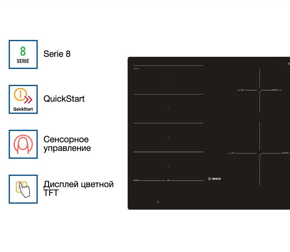 - Функция PowerBoost обеспечивает быстрый нагрев без потери контроля над процессом готовки.
