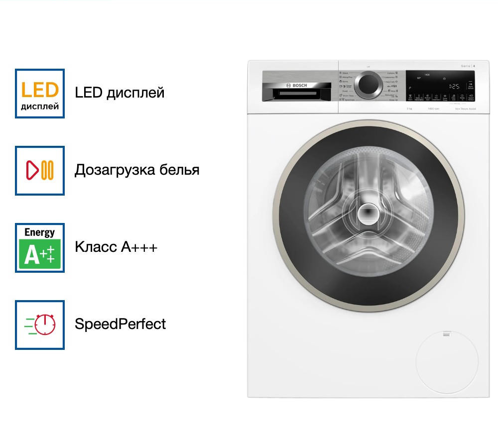 Стиральная машина Bosch WGA24400ME из серии 4 стала настоящей находкой для нашей семьи! Особенно порадовала функция SpeedPerfect — теперь стирка хлопковых вещей занимает вдвое меньше времени без ущерба для качества. Это просто спасение в будние дни, когда времени катастрофически не хватает. Очень удобна и функция дозагрузки: бывало, что забыла положить носочки или полотенце — теперь можно просто приостановить программу и добавить вещи, не перезапуская цикл с нуля. Отдельно хочу отметить программу «Антиаллергенная» — у моего ребёнка чувствительная кожа, и эта опция действительно помогает: вещи после стирки мягкие, без раздражений и остатков порошка. А ещё отложенный старт на 24 часа позволяет запускать машинку ночью по льготному тарифу — экономия ощутимая!