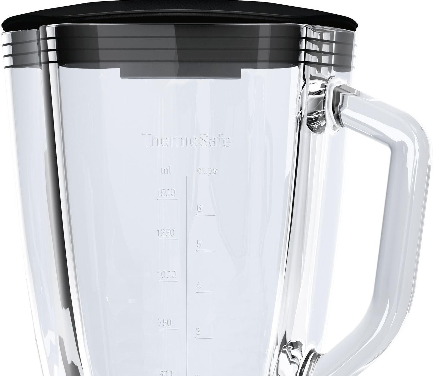 Блендер Bosch MMB65G5M с системой фиксации Easy KlickKnife позволяет легко и безопасно извлечь и вымыть нож. Лезвия расположены на разных уровнях, что обеспечивает равномерное смешивание и измельчение продуктов. Термостойкий стеклянный кувшин подходит для приготовления горячих супов и холодных лимонадов или смузи. Проталкиватель в комплекте обеспечит безопасную эксплуатацию во время работы прибора.