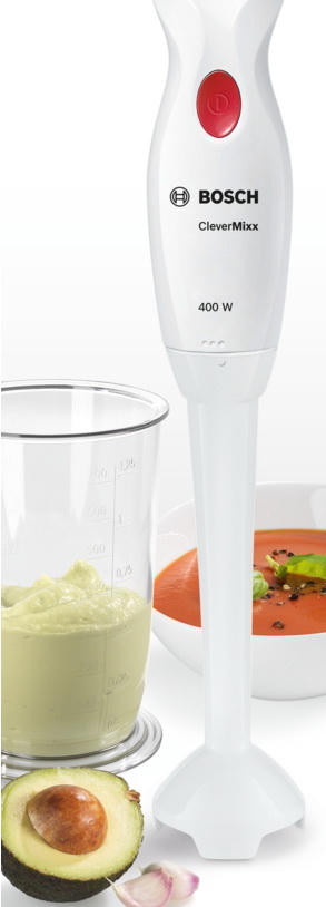Блендер Bosch MSM 14100 сочетает в себе стиль и функциональность. Эргономичная форма рукояти обеспечит надежную фиксацию устройства во время работы и гарантирует дополнительную безопасность. Термостойкий пластик позволит готовить горячие супы. Оптимальной мощности мотора достаточно для достижения эффективного результата измельчения.