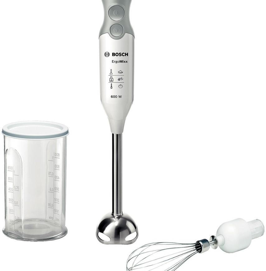 Блендер Bosch MSM 66130 оснащен 12 скоростями, что позволит подобрать наиболее подходящую для определенного блюда. Прибор управляется двумя кнопками и поворотным переключаталем. Мощный мотор на 600 Вт обеспечит эффективную работу. Насадки отсоединяются нажатием всего одной кнопки. В комплекте прилагаются венчик для взбивания и мерный стакан с крышкой.