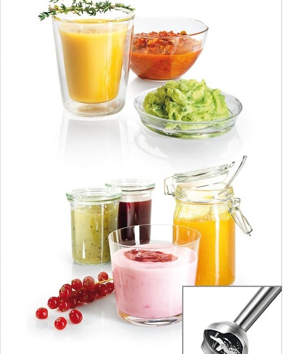 Разнообразие насадок расширяет возможности модели. Большие кнопки обеспечивают удобное управление и позволяют быстро менять насадки. Эргономичная рукоятка комфортно удерживается в руке. Специальное покрытие предотвращает скольжение. Ножка блендера и принадлежности можно мыть в посудомоечной машине.