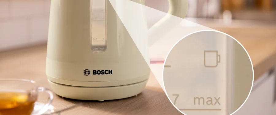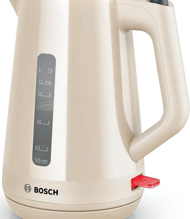 Чайник Bosch TWK 1M127 - это превосходный выбор для тех, кто ценит качество и надежность. Стильный дизайн в бежевом цвете, выполненный из прочного пластика, делает этот чайник не только функциональным, но и эстетически привлекательным. Он станет изысканным дополнением к любой кухне, подчеркнет ваш вкус и стиль. Основное преимущество этого чайника - его мощность. С мощностью в 2400 Вт, он быстро нагревает воду до нужной температуры. Закрытая спираль обеспечивает равномерное и быстрое нагревание, что позволяет сэкономить время при приготовлении напитков.