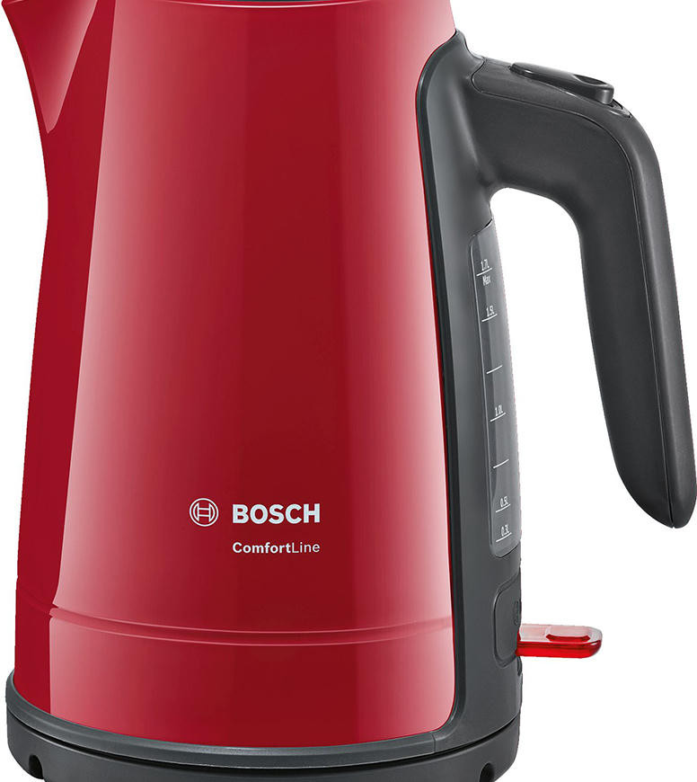 Чайник Bosch TWK 6A014 оснащен крышкой, которая открывается автоматически одним нажатием кнопки. Защита от перегрева автоматически отключает прибор без воды или, если уровень жидкости слишком низкий. Фильтр в носике прибора не даст попасть накипи в чашку.