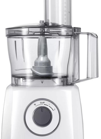 Кухонный комбайн Bosch MCM3100WGB имеет чашу в 2.3 литра в нее с легкостью помещаются аксессуары. Благодаря прорезиненным ножкам прибор устойчиво стоит при работе. Более 20 функций работы устройства с помощью насадок в комплекте таких, как двусторонний диск для нарезки и натирания.