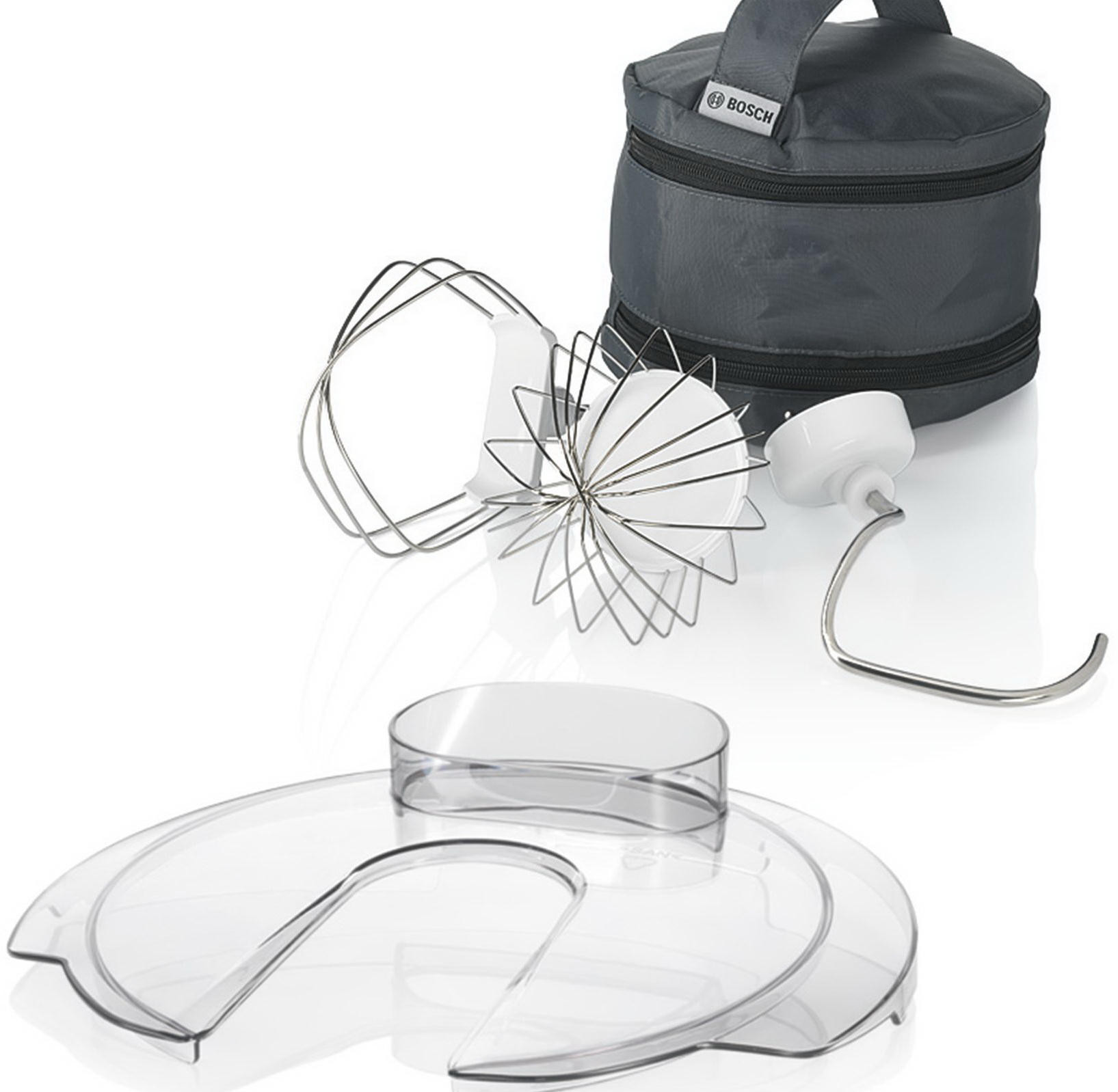 Кухонный комбайн Bosch MUM 54Y00 предназначен для замешивания теста, быстрого взбивания крема и сливок. Большая чаша из нержавеющей стали 3,9 л позволяет замесить до 2 кг плотного теста. Функция автоматической парковки фиксирует насадки в удобном положении для снятия. Венчики и крюк для теста можно положить в удобную сумку, которая хранится в чаше комбайна.