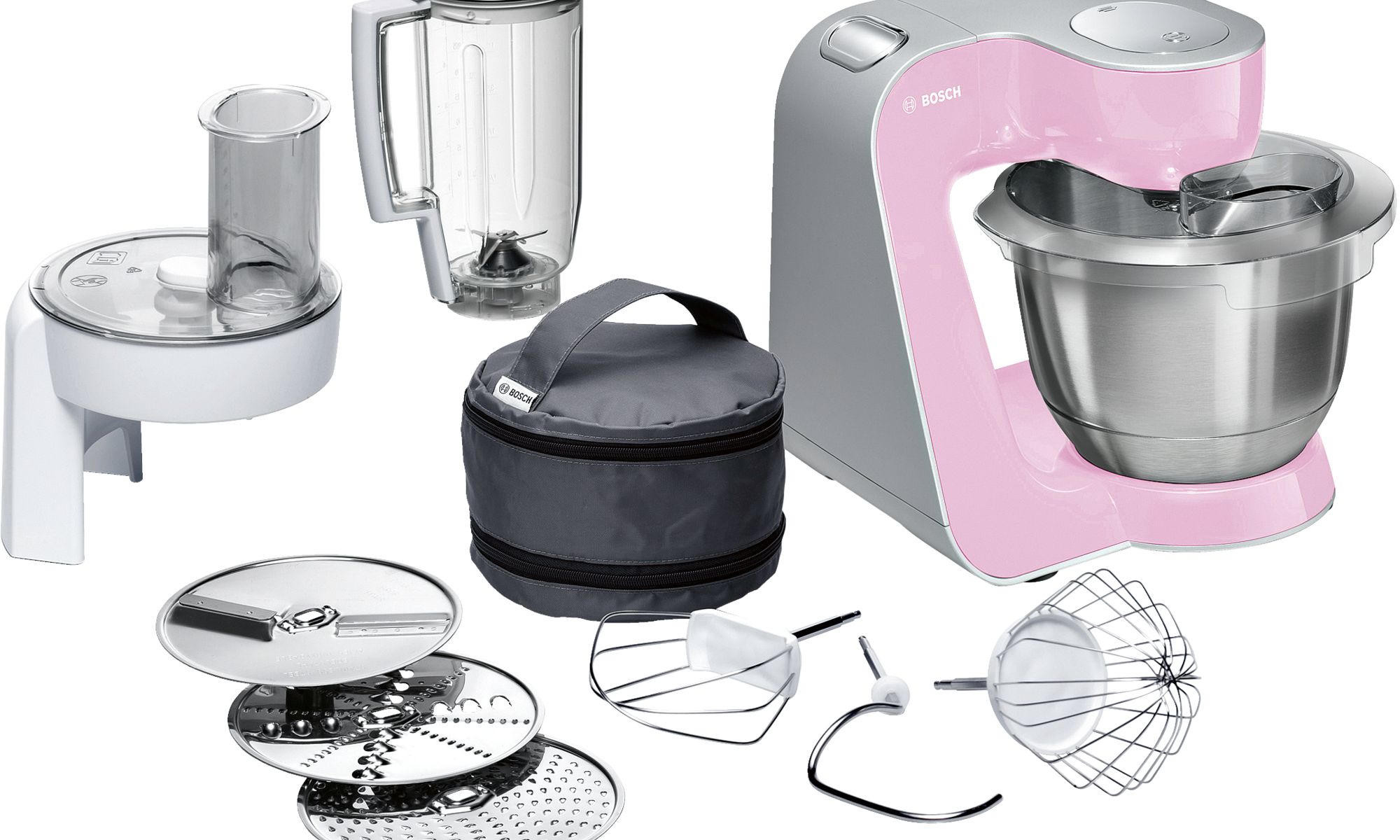 Мощная универсальная кухонная машина Bosch MUM 58K20 благодаря многофункиональности насадок дает возможность приготовить выпечку, салаты и ингредиенты для блюд. Вместительная чаша позволяет замесить до 1,9 кг плотного дрожжевого или 2,7 кг легкого теста. Насадка с тремя дисками справится с овощами, орехами, шоколадом и сыром. Блендер предназначен для приготовления смузи, пюре и мороженого.