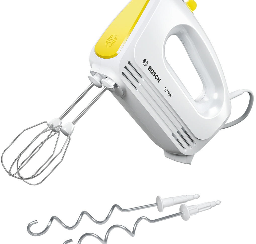 Миксер Bosch MFQ 2210Y оборудован двумя типами насадок: венчиками для взбивания и крюками для замешивания теста. Возможно выбрать одну из четырех скоростей для разного типа блюд, а импульсный режим позволяет приготовить соусы, кремы, жидкое и плотное тесто.