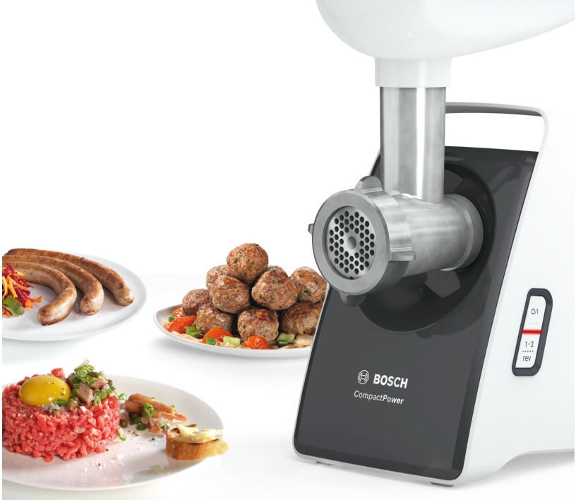 Мясорубка Bosch MFW 3640A CompactPower — многофункциональный прибор с насадками для шинкования овощей, приготовления фарша, колбас и кеббов. Высокая производительность 1.9 кг/мин и надежность прибора сочетается с компактными размерами. При функции реверс появляется возможность провернуть шнек в обратном направлении для очистки.