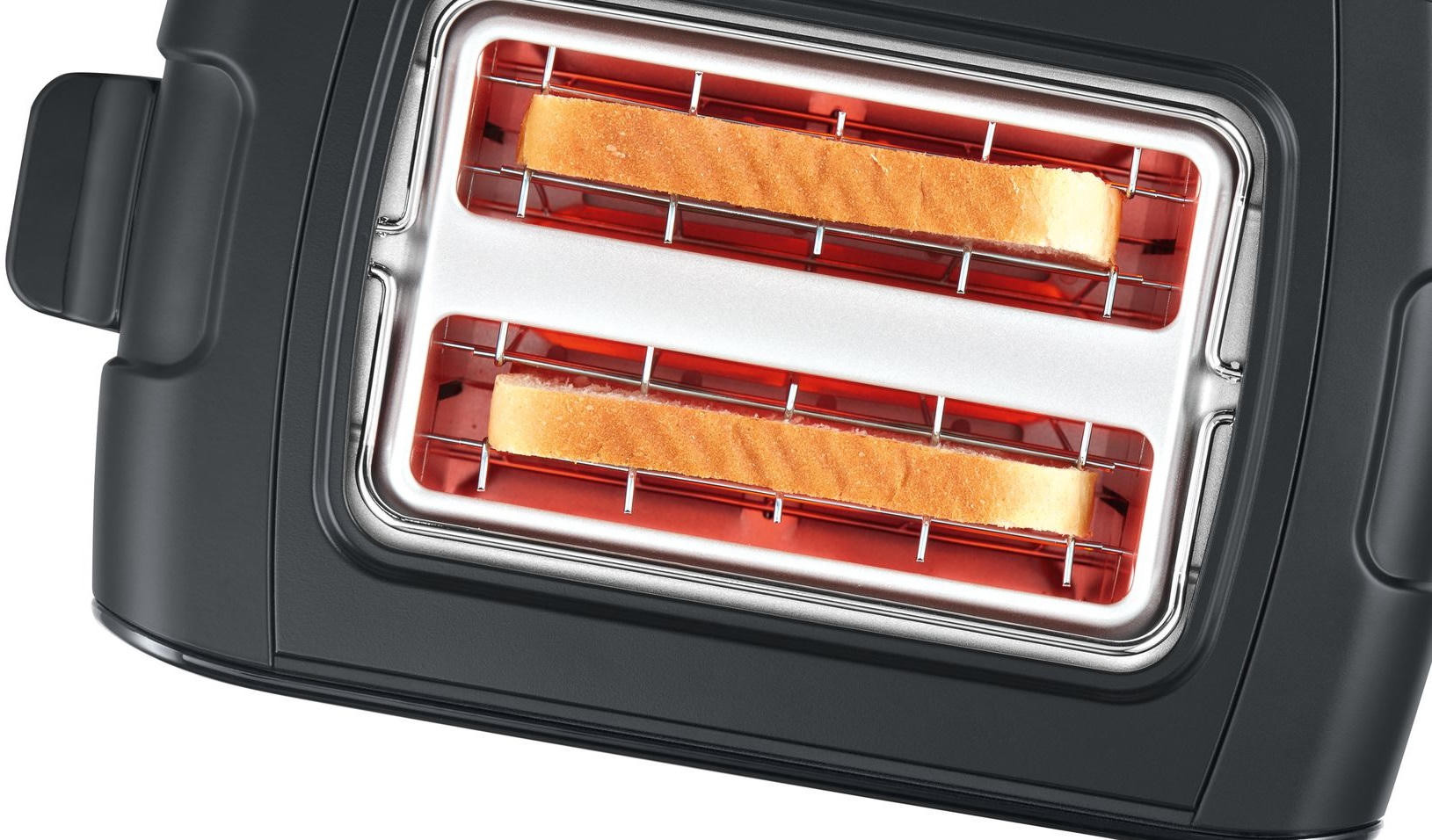 Компактный тостер Bosch TAT 6A113 для приготовления двух ломтиков хлеба. Бесступенчатый терморегулятор с интегрированной функцией подогрева позволяет выбрать нужную степень поджаривания хлеба, автоматическое центрирование обеспечивает равномерность прожарки. Для приготовления замороженных тостов нужно нажать на отдельную подсвеченную клавишу. Для извлечения небольших ломтиков хлеба предусмотрен высокий подъем решетки.
