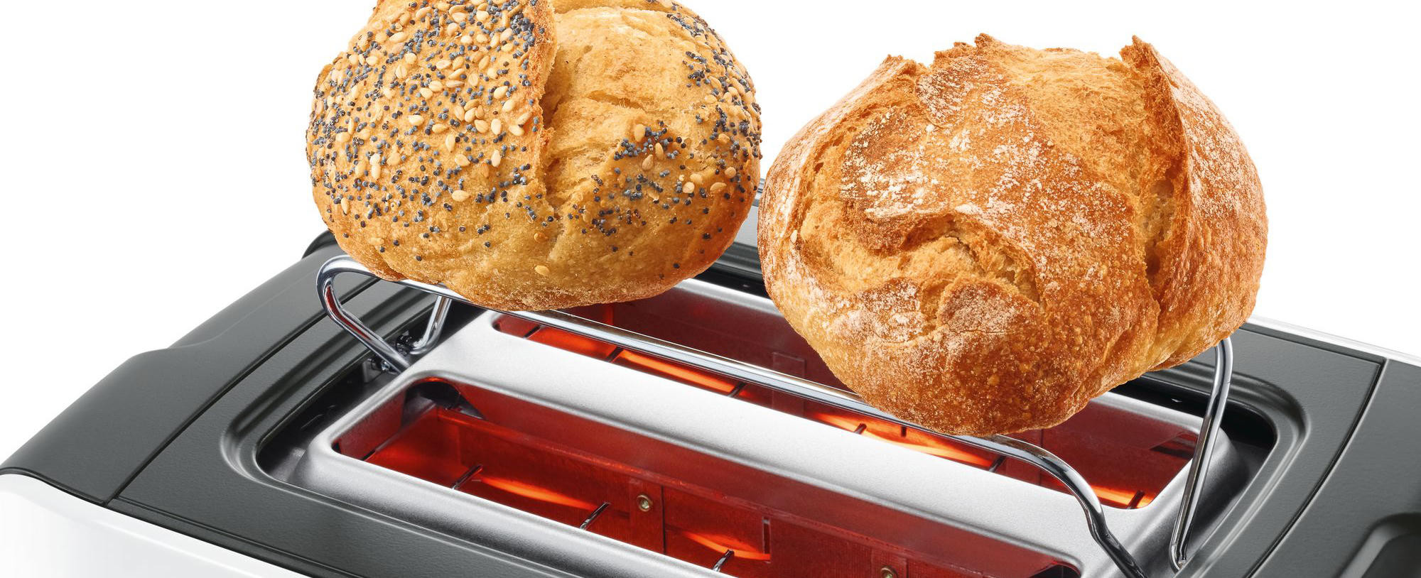 Компактный тостер Bosch TAT6A111 из серии ComfortLine рассчитан на одновременное приготовление двух кусочков. На высокой решетке можно поджаривать булочки. Электронный сенсор отслеживает оптимальную температуру порумянивания хлеба. Режим приготовления замороженных тостов включается отдельной подсвеченной клавишей.