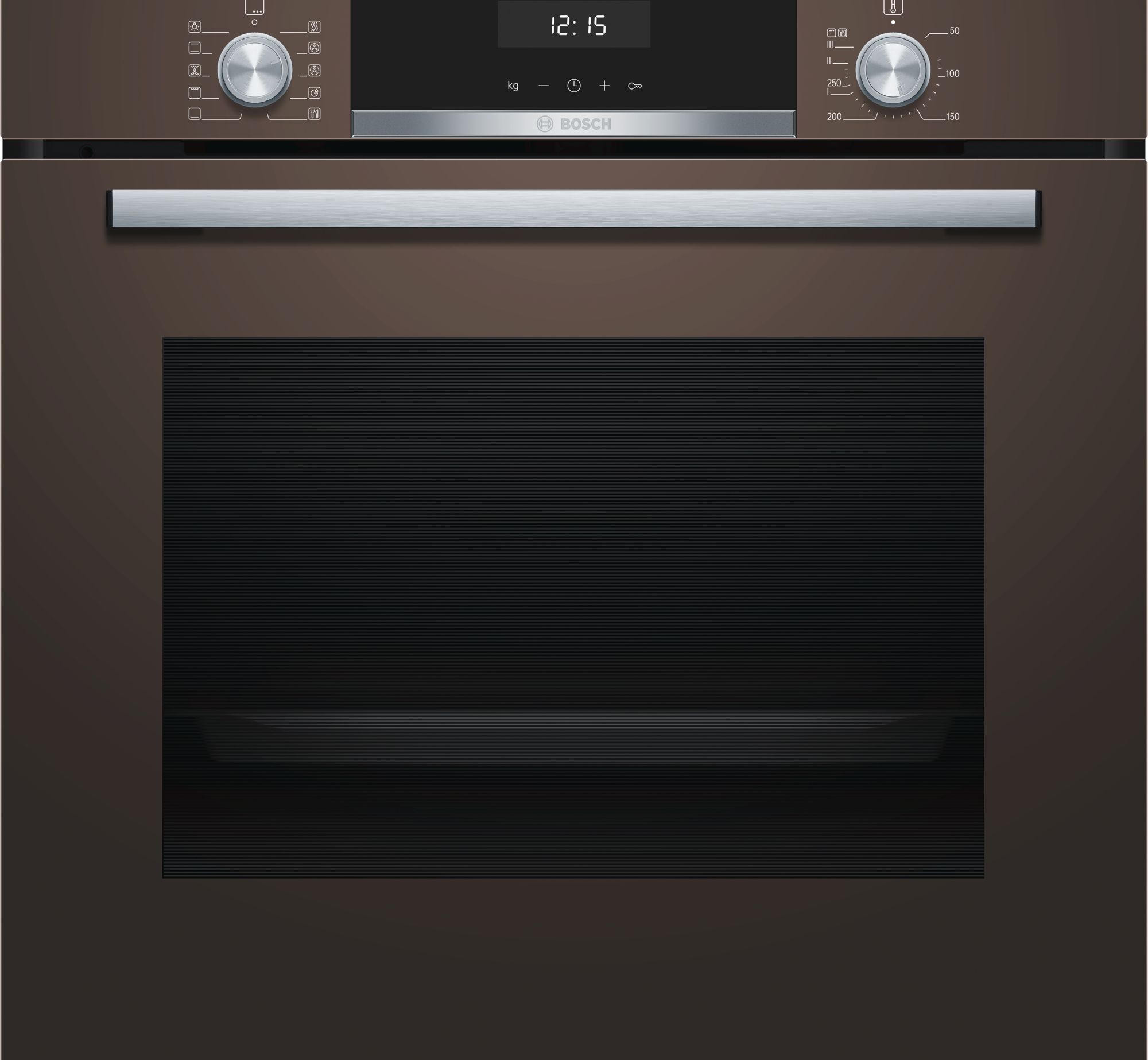 Bosch HBG537YM0R — это электрический духовой шкаф коричневого цвета объёмом 71 л. Камеру внутри освещает галогенная лампочка мощностью 25 Вт. Есть дисплей с индикацией температуры. Уровней установки противней — пять, в том числе два — с телескопическими направляющими. Предусмотрена блокировка от детей с возможностью настройки. В комплекте идут два противня (универсальный и эмалированный) и комбинированная решётка.