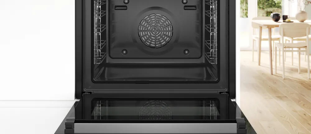 Духовой шкаф оснащен функцией Home Connect, которая позволяет управлять устройством дистанционно через приложение на смартфоне. В арсенале прибора 18 режимов нагрева, включая 4D-горячий воздух, верхний/нижний жар, большой и малый гриль, режим для пиццы, бережное тушение и даже Air Fry для приготовления блюд без использования масла. Автоматические программы и специальные режимы, такие как подъем теста и подогрев готовых блюд, делают процесс приготовления еще более удобным. Многоточечный термощуп PerfectRoast и сенсор для выпечки PerfectBake обеспечивают идеальные результаты при приготовлении различных блюд. Прибор также оснащен системой быстрого разогрева и функцией поддержания температуры. Дверца шкафа откидная, оснащена амортизатором SoftClose для мягкого и бесшумного закрытия. Внутреннее освещение LED обеспечивает хороший обзор содержимого. Очистка прибора осуществляется пиролитическим методом – при высокой температуре грязь превращается в пепел, который легко удаляется.