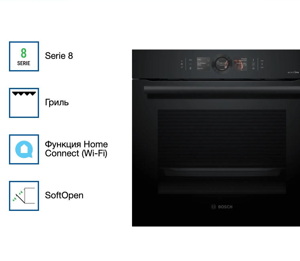 Электрический духовой шкаф Bosch HSG856XC1 из серии Serie | 8 — это сочетание современного дизайна и передовых технологий. Стильный черный цвет прибора гармонично впишется в любой интерьер, а его компактные размеры (59.5 см в высоту, 59.4 см в ширину и 54.8 см в глубину) позволят установить его даже в небольшой кухне. Управление духовкой осуществляется с помощью сенсорных переключателей Control Ring, что делает процесс приготовления еще более комфортным и удобным.
