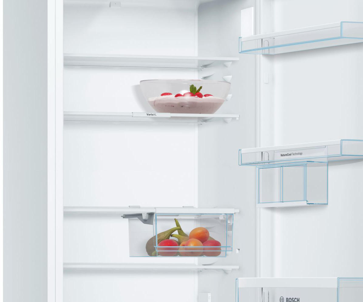 Охлаждение морозильника в Бош KGE39XW2OR происходит по технологии LowFrost. Она помогает сохранить естественную влажность в замороженных продуктах, не пересушивает и не перемораживает их. Но 1-2 раза в год вам придется совершать профилактическое обслуживание.