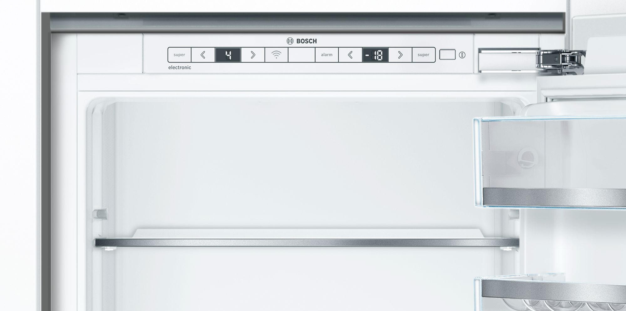 Двухкамерный холодильник Bosch KIN86HD20R — встраиваемая модель с зоной свежести VitaFresh plus. Светодиодная подсветка ярко и равномерно освещает холодильную камеру холодильника. Благодаря системе NoFrost нет необходимости в размораживании прибора. В морозильной камере расположен большой ящик для замороженных продуктов BigBox.