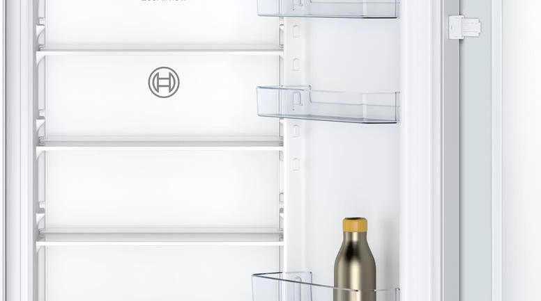 Встраиваемый двухкамерный холодильник Bosch KIN86NSF0 оснащен светодиодным освещением, не создает бликов, а также не требует постоянного замена. Контейнер Multi Box XXL позволяет вмести целый арбуз. Технология FreshSense сохраняет приятный климат для продуктов, не делая их слишком мягким или твёрдыми.