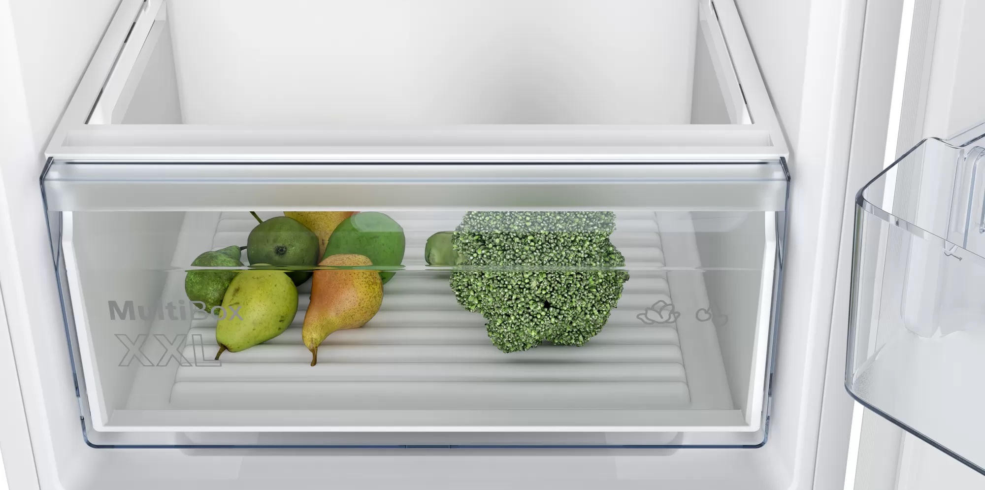 Встраиваемый холодильник Bosch KIV 86 NFF0 оснащен системой EcoAirflow — оптимальная циркуляция воздуха и постоянная температура охлаждения. Ящик Big Box: идеально подходит для размещения морозильных ящиков или крупных замороженных товаров. Светодиодное освещение потребляет меньше энергии, чем обычное освещение холодильника и прослужит в течение всего жизненного цикла устройства.