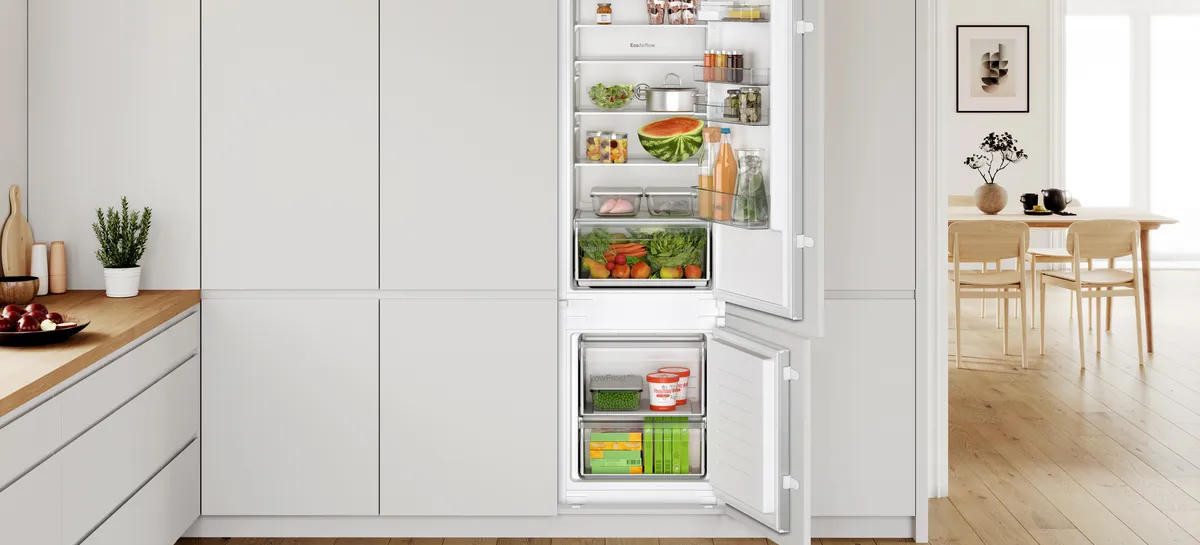 Обожаю свой новый холодильник! Он встраиваемый, с двумя камерами и светодиодной подсветкой. Супер!
