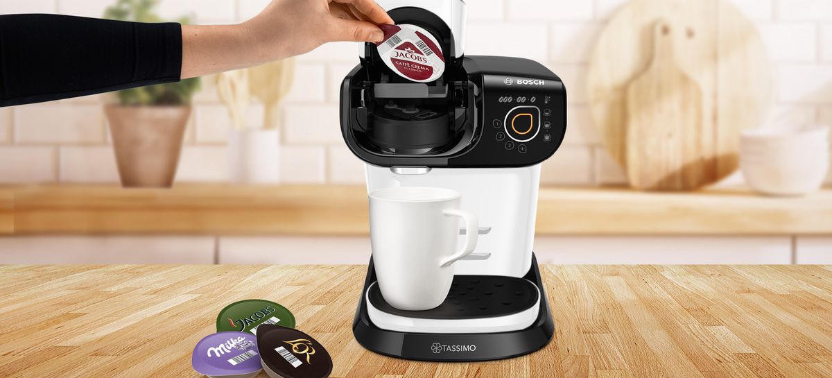 Bosch TAS6504 Tassimo MY WAY 2 — это капсульная кофемашина белого цвета. Включается и начинает работать простым нажатием одной кнопки. Уникальный подход к приготовлению кофейных напитков благодаря возможности выбора и сохранения персональных настроек крепости, температуры и объема напитка. Она считывает с капсулы штрих-код и автоматически определяет необходимое количество воды, время заваривания и температуру воды.
