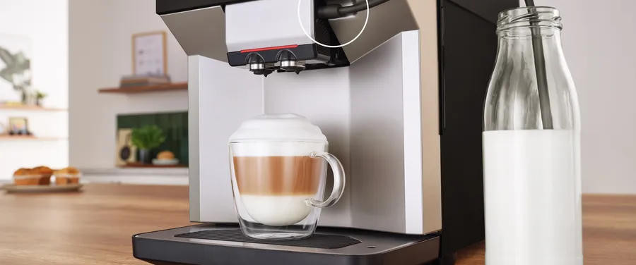 Система приготовления молочных напитков реализована в формате OneTouch для получения капучино, латте макиато, флэт уайт и других специальных рецептов нажатием одной клавиши; функция OneTouch Double Cup позволяет подать сразу две порции, экономя время при утренней суете. Автоматическая очистка паром после каждого приготовления и молочная система milkClean поддерживают гигиену и предотвращают образование остатков белка внутри трубок. Одновременное приготовление двух чашек, регулировка высоты дозатора и капучинатора, а также возможность изменения объема порции делают прибор удобным для различной посуды и привычек приготовления.