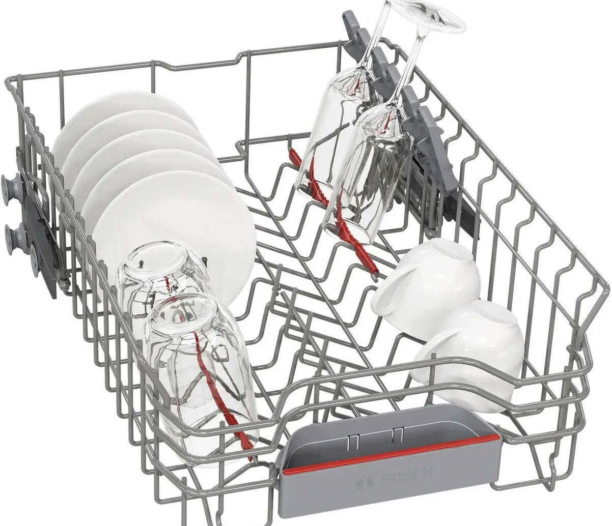 Посудомоечная машина Bosch SPS4HMI49E оснащена функцией IntensiveZone для интенсивной очистки сложно отмываемой посуды, а также функцией SpeedPerfectPlus для ускоренного мытья. Кроме того, в машине предусмотрена программа Machine Care для ухода за самим устройством. Дополнительное полоскание гарантирует идеальную чистоту и блеск посуды после каждого цикла мытья. Управление машиной осуществляется через открытую панель с кнопками и дисплеем. С помощью функции Home Connect можно запустить машину дистанционно через приложение на смартфоне. Также в наличии индикаторы наличия ополаскивателя и соли, а также таймер отсрочки запуска от 1 до 24 часов. Внутри машины три корзины для размещения посуды, верхний из которых можно переставить по высоте. В нижнем коробе предусмотрены две полки для чашек и две складные направляющие для тарелок. Система AquaStop и полная защита от протечек обеспечивают безопасность использования, а блокировка от детей предотвращает случайный запуск.
