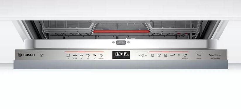 Полновстраиваемая посудомоечная машина Bosch SMV66TX01R рассчитана на большую семью и вмещает 14 комплектов посуды. Функция HygienePlus в конце мойки ополаскивает посуду водой 70 градусов. Это гарантирует уничтожение до 99% бактерий — обеззараживайте банки для консервирования, бутылочки для детского питания и другие емкости. Благодаря тому, что сушка выполняется за счет теплообменника, хрупкая стеклянная посуда будет защищена от температурного шока и не испортится. Проекция дисплея TimeLight отображает световым лучом ход выполнения программы и выбранные настройки — просто посмотрите на пол! За счет встроенного замка ServoSchloss дверь закроется сама, если угол открытия меньше 10 градусов.