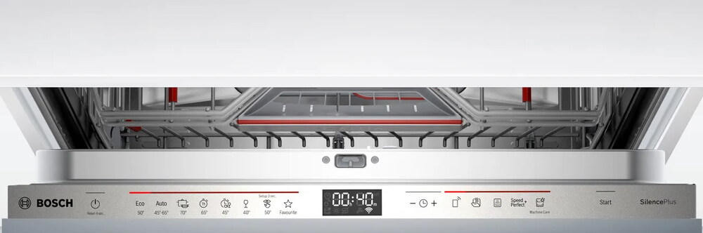 Встраиваемая посудомоечная машина Bosch SMV6ECX57E отличается утонченным дизайном и высоким качеством исполнения. Изящная панель управления, выполненная из нержавеющей стали, оснащена сенсорными кнопками и дисплеем, что обеспечивает удобство и простоту управления. Особенностью данной модели является инверторный двигатель EcoSilence Drive, который обеспечивает бесшумную и эффективную работу машины. Семь стандартных программ и семь температурных режимов позволяют выбрать оптимальные параметры для различных типов посуды. Включая автоматическую, быструю, экономичную, интенсивную, стекло, ночную и мою программу, эта модель удовлетворяет все потребности пользователя. Встраиваемая посудомоечная машина оснащена функцией самоочистки фильтра и автооткрывания дверцы, что делает ее использование еще более удобным. Сенсор чистоты воды AquaSensor контролирует качество воды в процессе работы, обеспечивая идеальную чистоту посуды. Кроме того, машина оснащена системой Home Connect, что позволяет удаленно управлять ею через приложение на смартфоне.