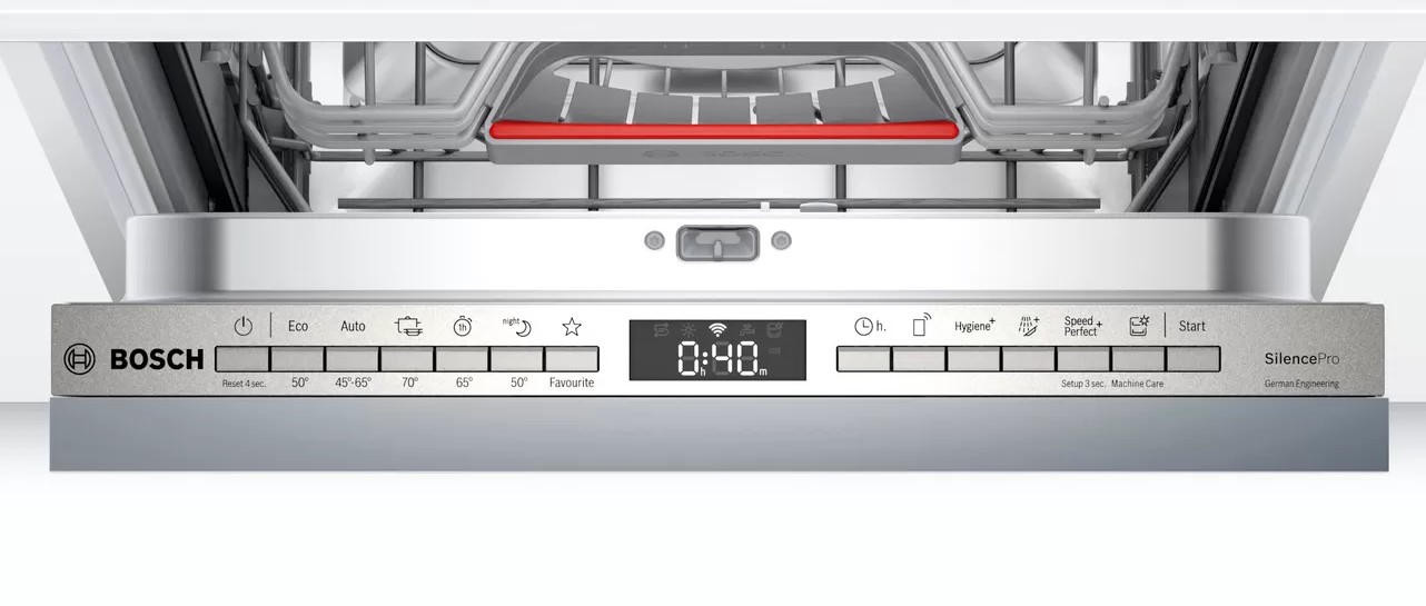 Посудомоечная машина Bosch SPV6HMX1MR — новинка, которая оснащена управлением через Wi-Fi. С технологией Home Connect вы можете настраивать и запускать мойку прямо со смартфона. Завершилась программа или нужно залить ополаскиватель? Активируйте отправку уведомлений, чтобы всегда знать, чем занимается ваше устройство.