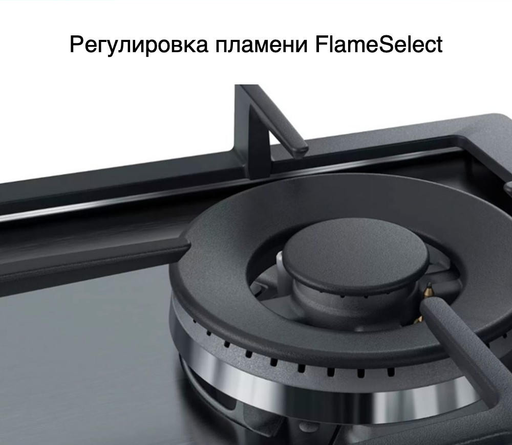 Данная техника обладает функцией регулировкой пламени FlameSelect. С ее помощью вы можете точно регулировать пламя горелки по 9 ступеням мощности. Такая особенность поверхности понравится каждому члену семьи. Кроме этого, процесс приготовления блюд станет еще проще. Теперь вы сможете использовать посуду любого диаметра, в этом помогут 4 мощные конфорки. Мощность одной конфорки 1 кВт, мощность двух 1,75 кВт и последней 3,5 кВт. Одна из которых имеет конструкцию «Двойная корона» и оборудована подставкой под вок-сковородки. Эта экспресс-конфорка она имеет два кольца пламени и предназначена для наиболее интенсивного нагревания. С помощью нее вы сможете создать атмосферу ресторана на домашней кухне и готовить блюда азиатской кухни в специальных сковородах, использовать казан и другую посуду с толстыми стенками.