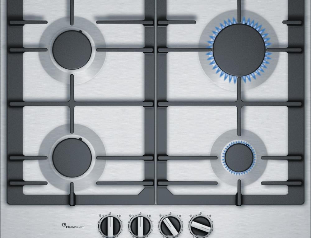 Безопасную эксплуатацию газовой варочной панели Бош PСP6А5B90R осуществляет система газ-контроль, которая подразумевает, что благодаря специальным датчику и клапану при случайном угасании огня газ мгновенно блокируется и перестает поступать — утечка предотвращена. Также важно заметить, что оборудование обладает удобными габаритами для встраивания, и оно не займет много места на вашей кухни: высота — 4,5 см, ширина — 58,2 см, глубина — 52 см.